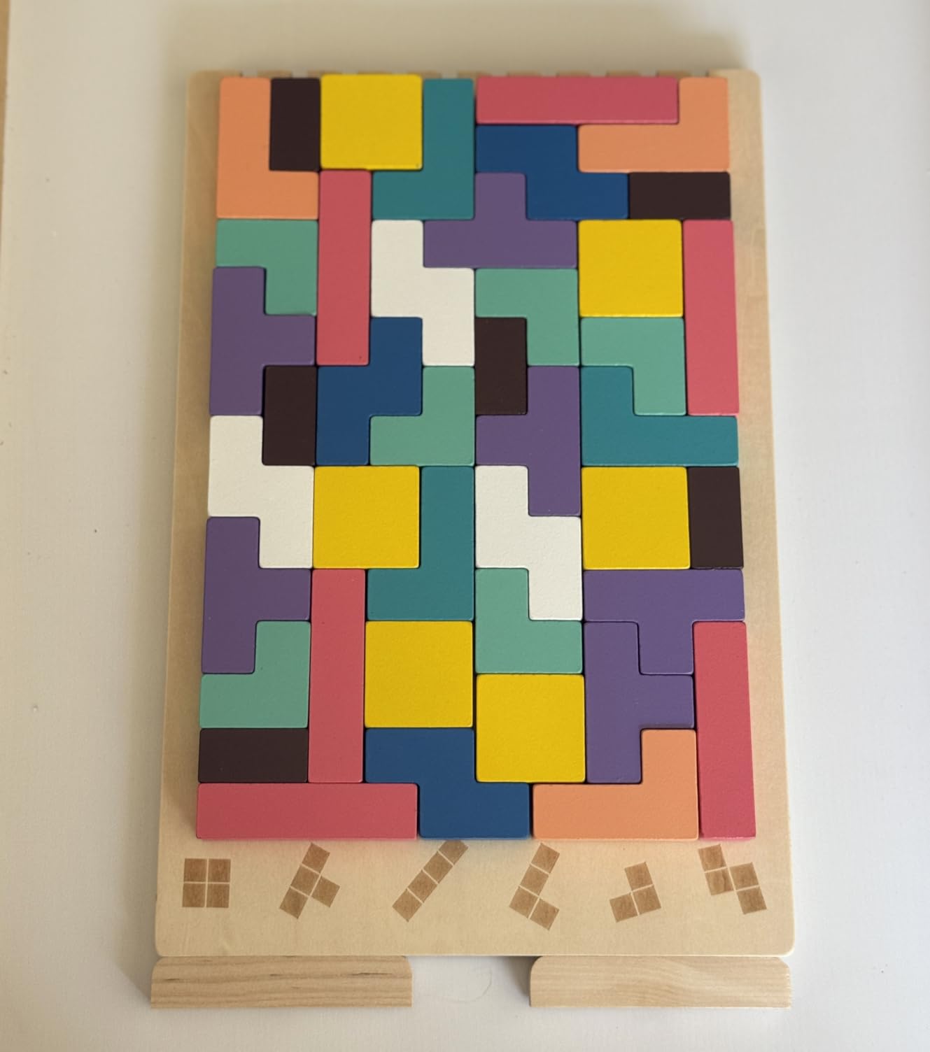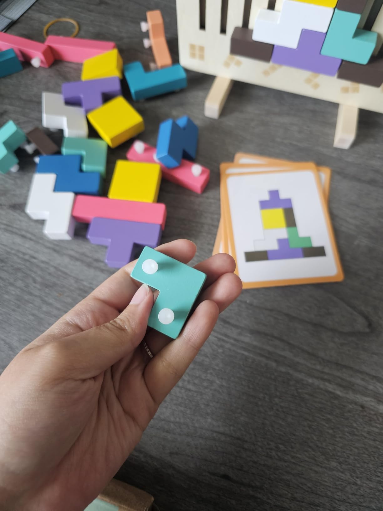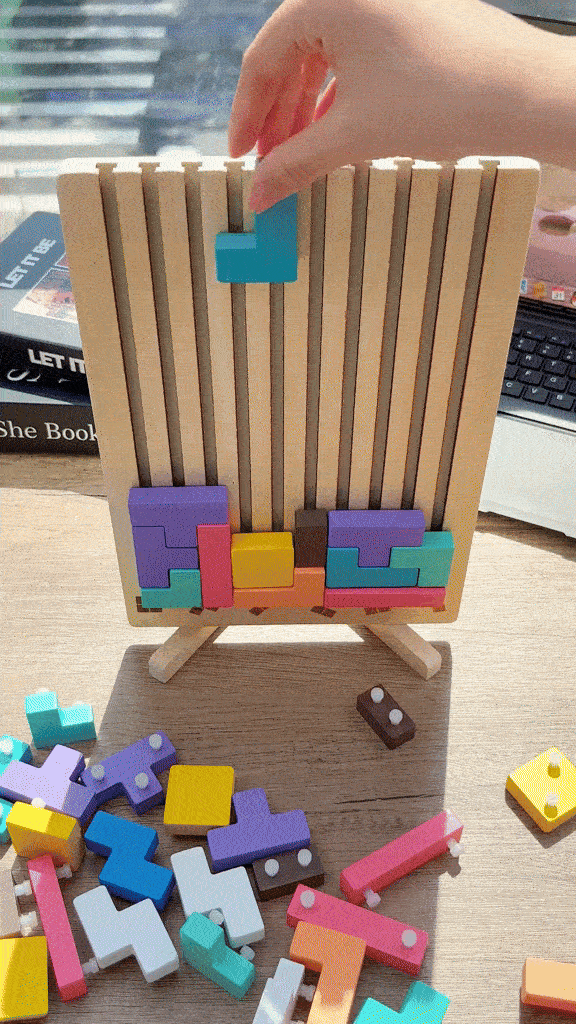 42 precisely-cut wooden blocks in 9 classic Tetris shapes train your child's brain to visualize, rotate, and fit pieces - building the spatial skills needed for math, engineering, and life.