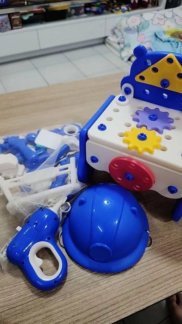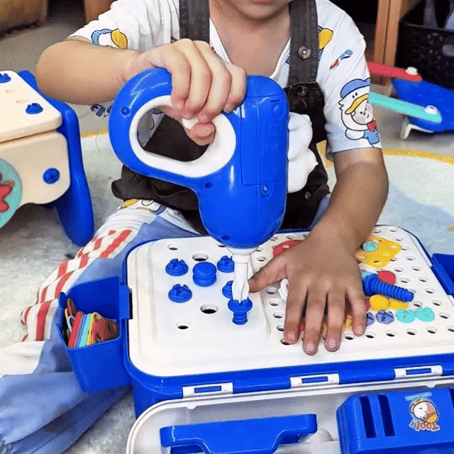 Thoson BuildBox is a real workshop scaled for small hands. Kids grab a wrench, tighten bolts, hammer pieces into place, and build actual structures, all from a toolbox that converts into their own workbench and seat. There's no app to download. No instructions to hover over. They open it, pick up a tool, and figure it out. That's not a limitation, that's the entire point.