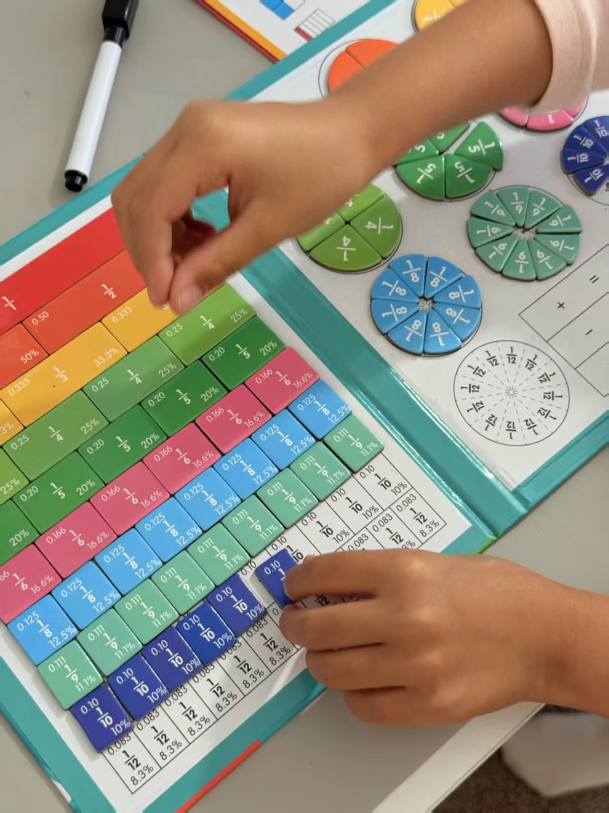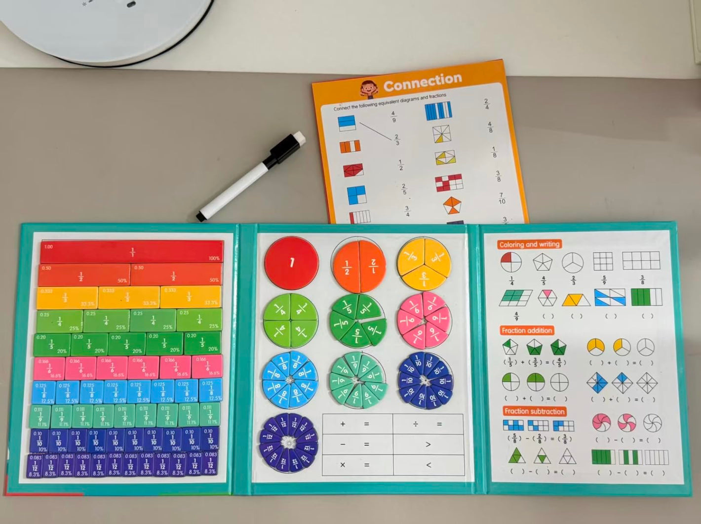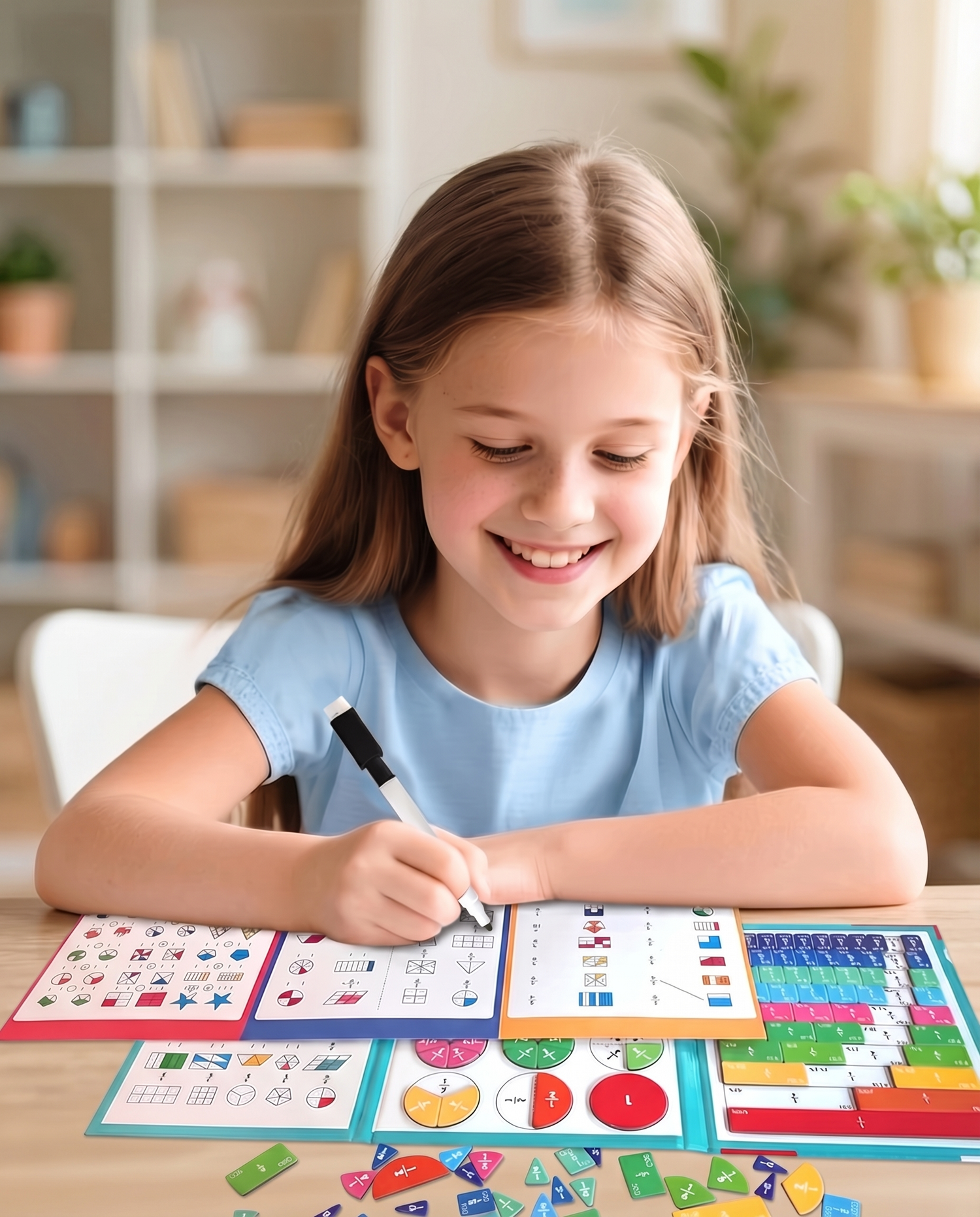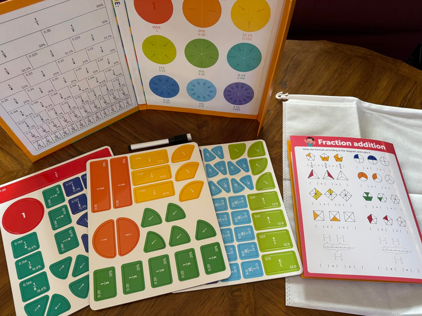 Thoson FracSnap is a magnetic fraction book where kids place color-coded pieces onto a board to see how parts make a whole. No worksheets. No apps. They pick up a piece, snap it on, and watch fractions click. Literally and mentally.