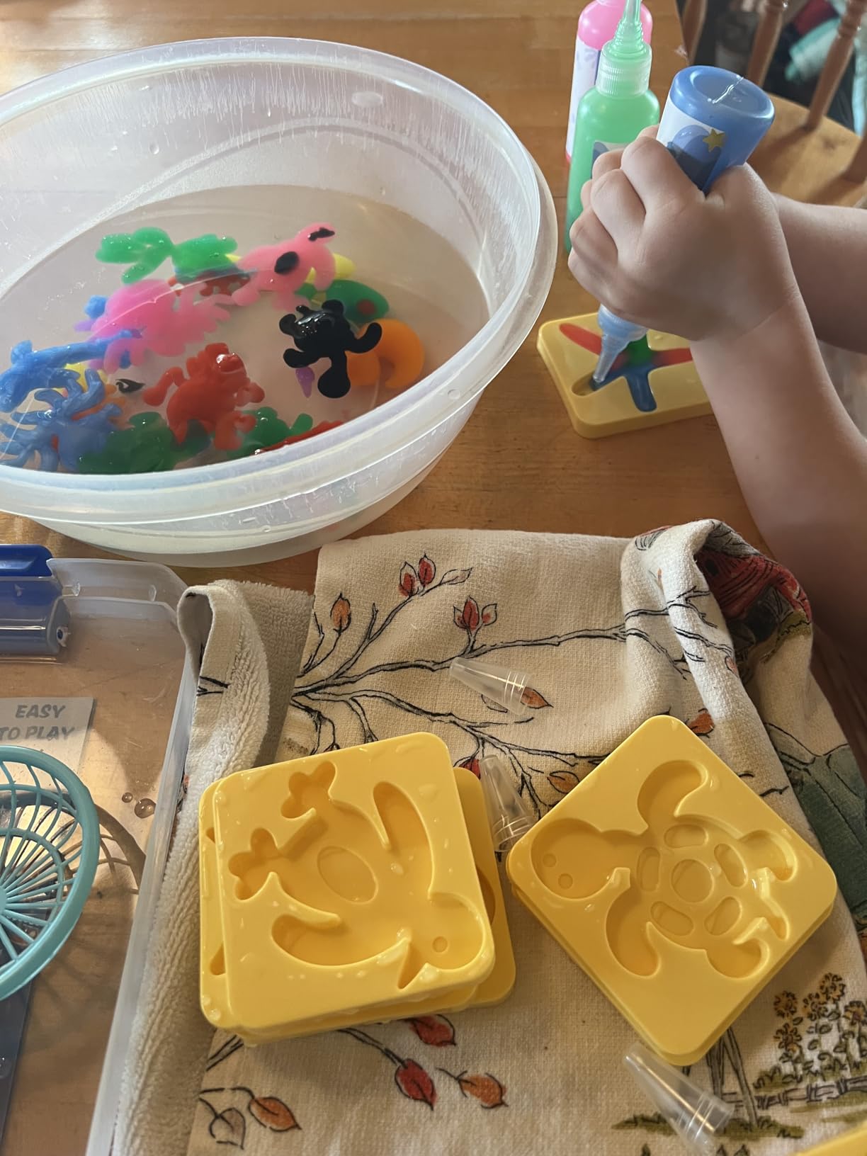 Thoson Magic Gel™ turns a bowl of water into a mini creation lab. Kids mix, pour, dip, and watch their 3D creatures set in minutes—no apps, no batteries, no waiting. The non-toxic formula and quick rinse reset keep play high and mess low. Perfect for focused, screen-free fun at home or on playdates.