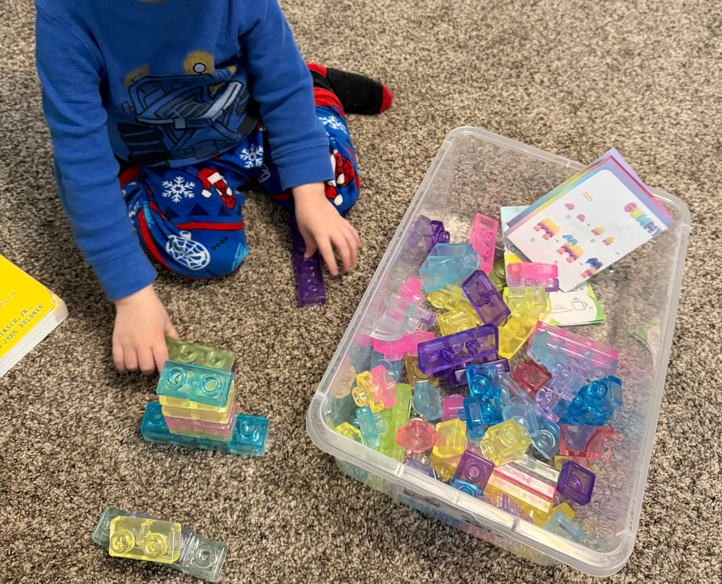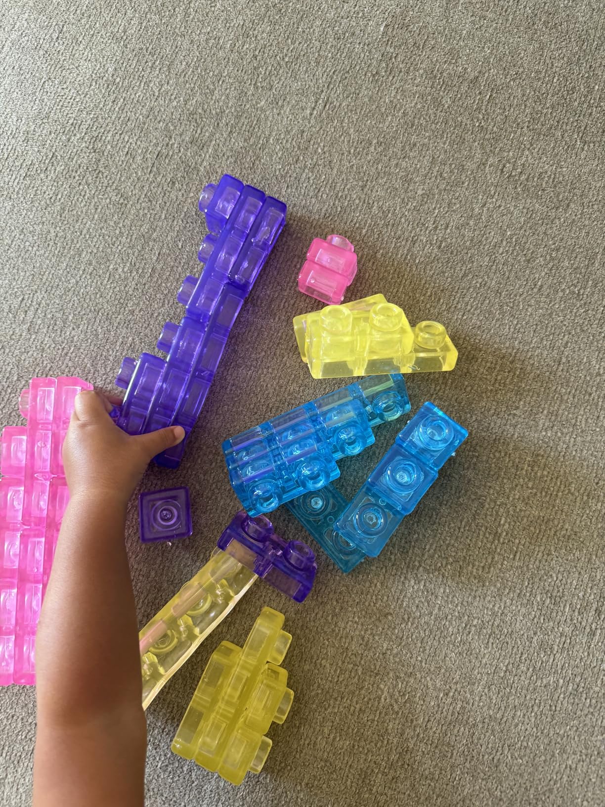 My daughter grabbed these out of the box and didn't look up for an hour. She squishes them, stretches them, stacks little towers, knocks them down, and starts over. She's 3 and figuring out which shapes fit together completely on her own. No help, no instructions. Just her on the floor, building.