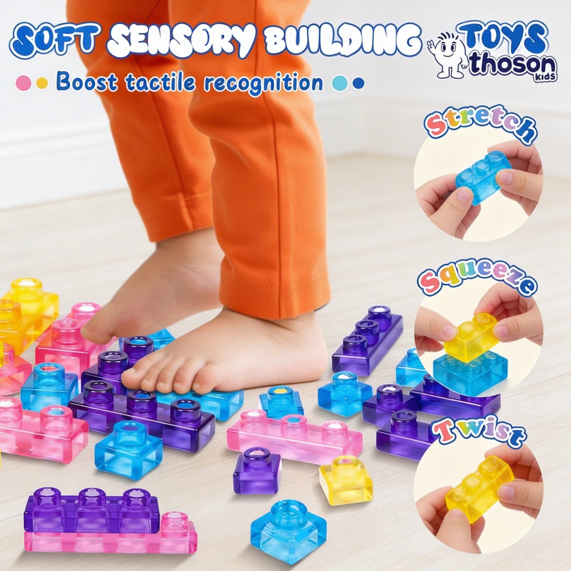 They start by squishing. Then they sort by color. Then they stack. Then they build something you didn't teach them. That's the progression every parent notices — what begins as sensory play quietly becomes problem-solving, spatial reasoning, and focus. 40 soft blocks. Zero instructions needed.